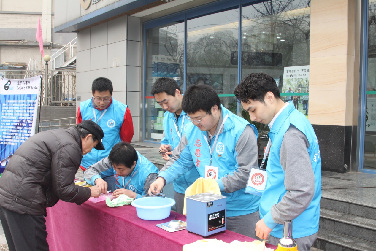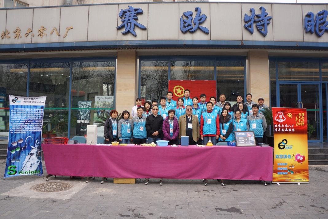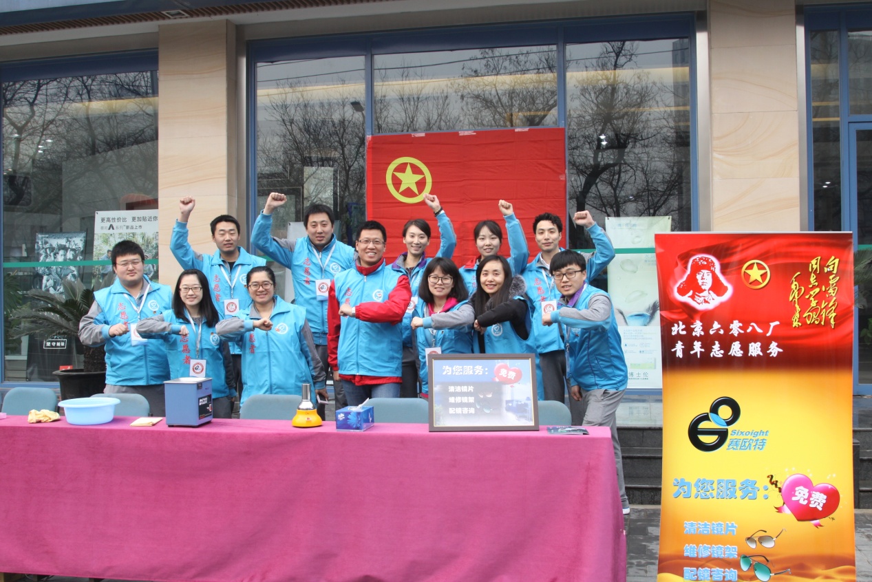 在毛澤東同志提出“向雷鋒同志學(xué)習(xí)”53周年之際,3月5日北京六零八廠團(tuán)支部及賽歐特眼鏡門市部的全體技師,在《學(xué)習(xí)雷鋒好榜樣》、《年輕的朋友來相會(huì)》歌聲中,投入到“學(xué)雷鋒,我奉獻(xiàn),我快樂的志愿服務(wù)中來”,期間,一輕團(tuán)委書記姚鶴鵬、北京玻璃集團(tuán)公司團(tuán)委副書記管文祺、北京六零八廠黨支部書記張希雨及廠領(lǐng)導(dǎo)班子一起參與志愿服務(wù)。為百姓免費(fèi)眼睛驗(yàn)光、眼鏡清洗、眼鏡修理、眼鏡更換鼻托等。青年團(tuán)員及各科室、鍋爐配電室?guī)煾祩円才宕髦驹刚咝嘏茀⑴c廠區(qū)清潔志愿勞動(dòng)中,幾個(gè)小時(shí)后,被洗刷后魚池的圍欄和被擦拭的燈桿、被清理的下水道口等,猶如嶄新般。此次活動(dòng)增強(qiáng)了青年團(tuán)員奉獻(xiàn)、團(tuán)結(jié)精神。打造和宣傳了賽歐特品牌,彰顯了國有企業(yè)服務(wù)社會(huì)、服務(wù)百姓之宗旨。